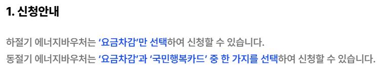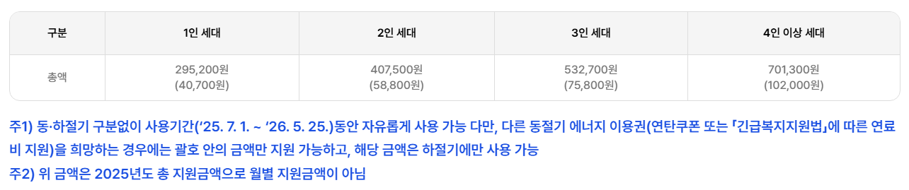 - 사용 기간: 하절기(여름) + 동절기(겨울)로 분할 지원