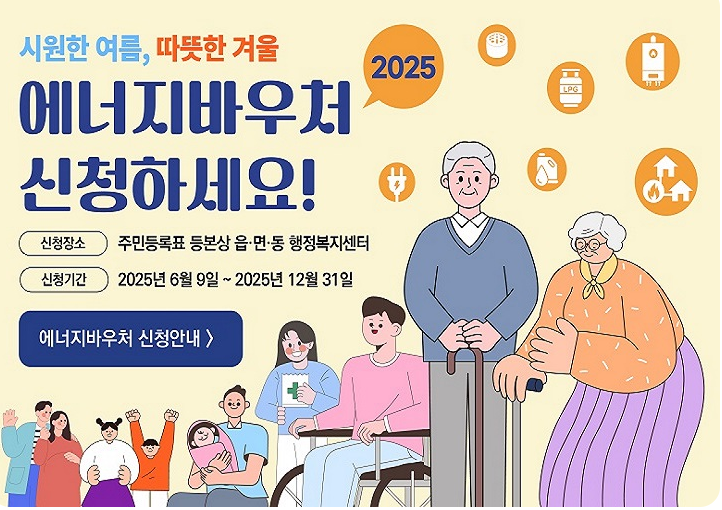 정부 복지제도는 신청하지 않으면 제공되지 않습니다. 지금 바로 에너지바우처 신청으로 여름도 시원하게, 겨울도 따뜻하게 보내시길 바랍니다.