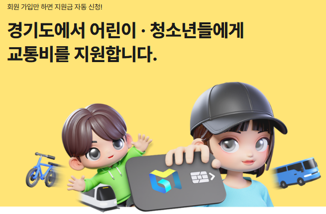 경기도에 거주하는 만 6세 이상 ~ 만 18세 이하의 어린이 및 청소년이 대중교통(버스, 지하철 등)을 이용한 교통비를 환급받을 수 있는 제도입니다.
