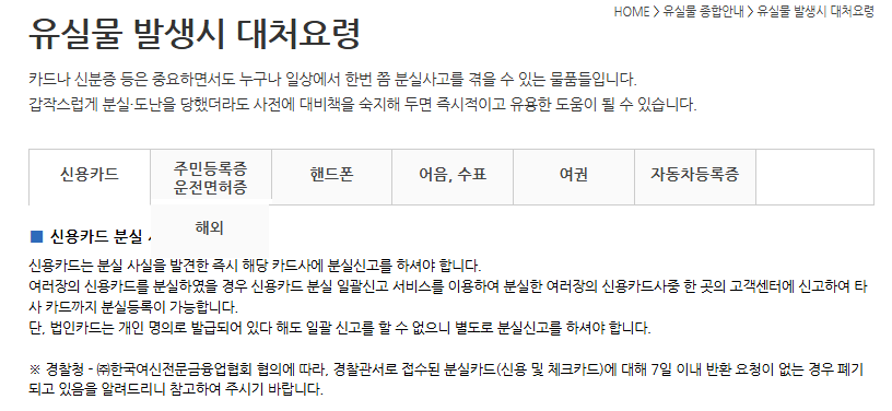 - 분실자는 온라인으로 직접 신고서를 작성할 수 있습니다.