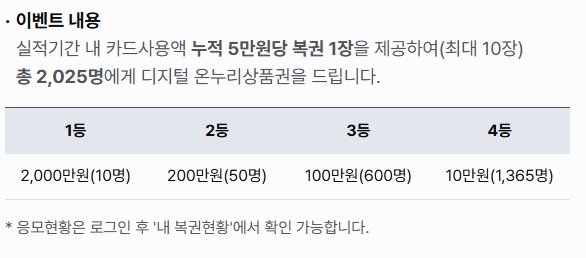 - 5만 원 단위로 소비를 관리해 응모 기회를 극대화