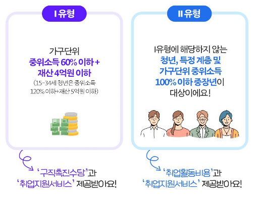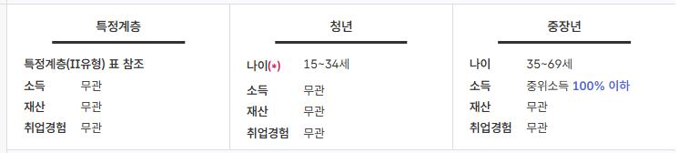 - 청년은 취업 경험 없어도 참여 가능 (단, 소득 기준은 중위소득 120% 이하, 재산 5억 원 이하)