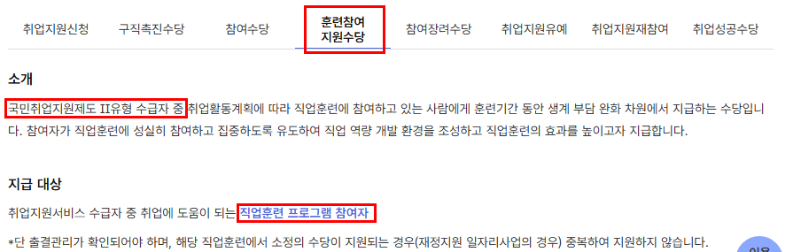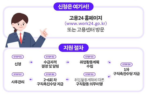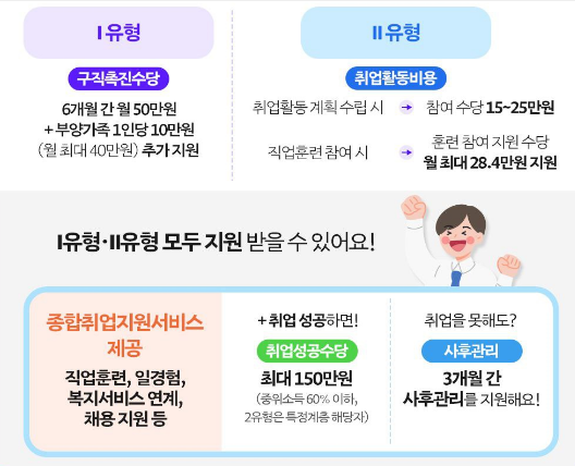| 주요 지원 | 구직촉진수당 최대 300만 원 | 직업훈련비, 교통비 등 실비 |