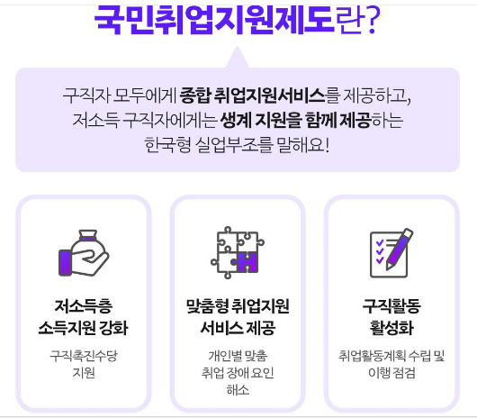 국민취업지원제도는 고용노동부에서 운영하는 취업 지원 서비스입니다. 구직자에게 단순히 일자리를 소개하는 것을 넘어, 구직활동 비용, 상담, 훈련, 취업 연계 등 통합적인 서비스를 제공합니다. 특히 생계 지원이 필요한 구직자에게 실질적인 보탬이 되는 제도입니다.