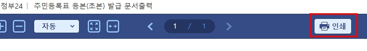 발급 버튼을 누르면 PDF가 생성됩니다. PDF로 저장하거나 바로 프린터로 출력할 수 있으며, 열람만 선택하면 법적 효력이 없으므로 주의가 필요합니다.