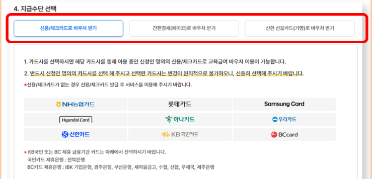 - 수령 방법 : 카드 포인트·간편결제·선불카드 중 선택