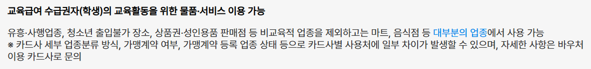 - 주요 사용처 : 도서·문구·학원·온라인 강의·IT 학습기기