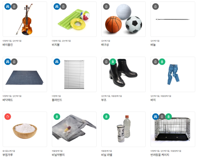 - 지역별 배출 요일, 봉투 규정 등 지자체별 정보