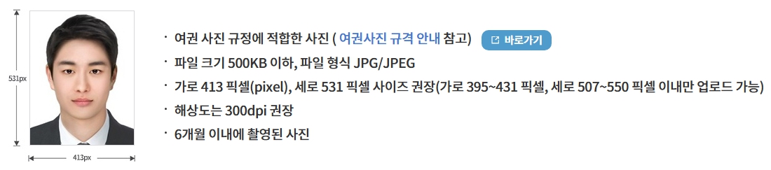 - 촬영 조건: 6개월 이내 촬영, 흰색 배경, 컬러, 무보정