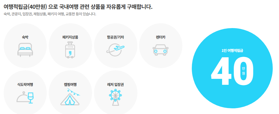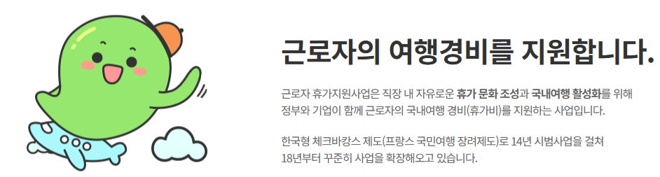 ‘근로자 휴가지원 사업’은 근로자의 국내여행 경비를 지원하기 위해 문화체육관광부와 한국관광공사가 운영하는 공동 지원 제도입니다. 근로자가 20만 원을 적립하면 기업과 정부가 각각 10만 원씩을 추가로 지원해 총 40만 원의 여행 경비를 사용할 수 있도록 구성되어 있습니다.