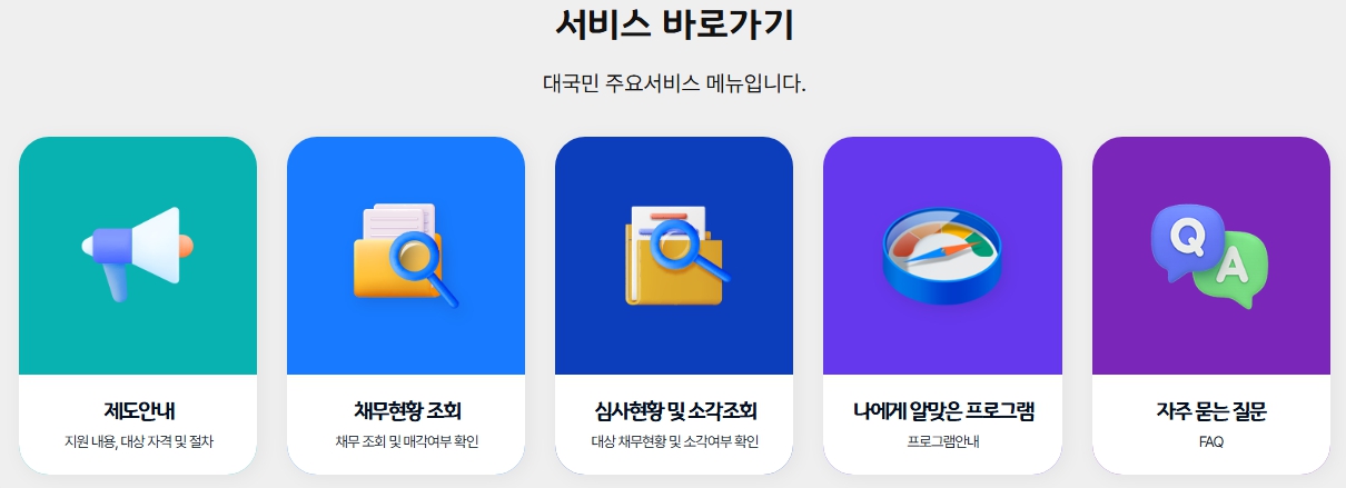 정부의 행정자료(소득·재산·생활여건 등)를 바탕으로 일괄 심사를 진행합니다. 심사 결과에 따라 채무 전액 소각 또는 채무조정이 결정되며, 결정된 사항은 순차적으로 안내됩니다.