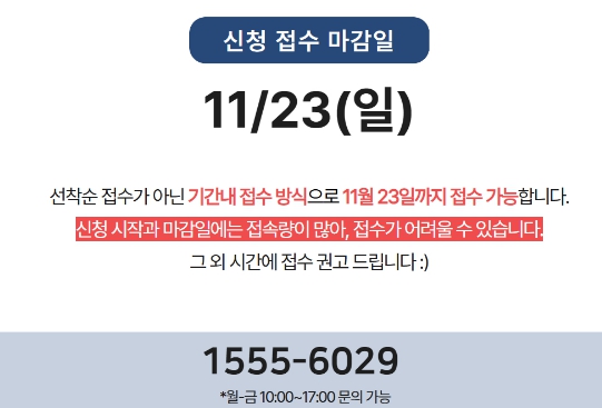 - 신청 접수: 2025년 10월 27일(월) ~ 11월 23일(일) 자정까지