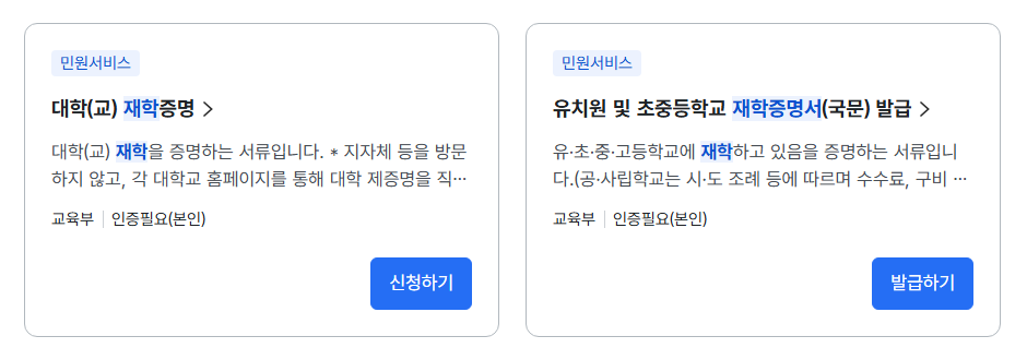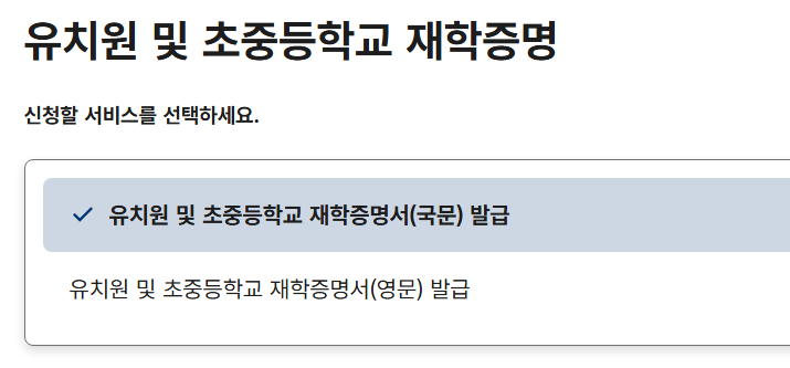 유치원 및 초·중·고등학교 재학증명서 인터넷 발급