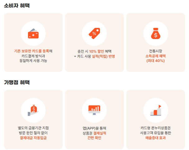등록된 카드로 결제하므로 일반 결제와 동일하게 카드 실적, 포인트, 캐시백 등의 혜택이 적용됩니다. 또한 전통시장에서 결제한 금액은 연말정산 시 최대 40%의 소득공제가 가능해 세제 혜택도 받을 수 있습니다.